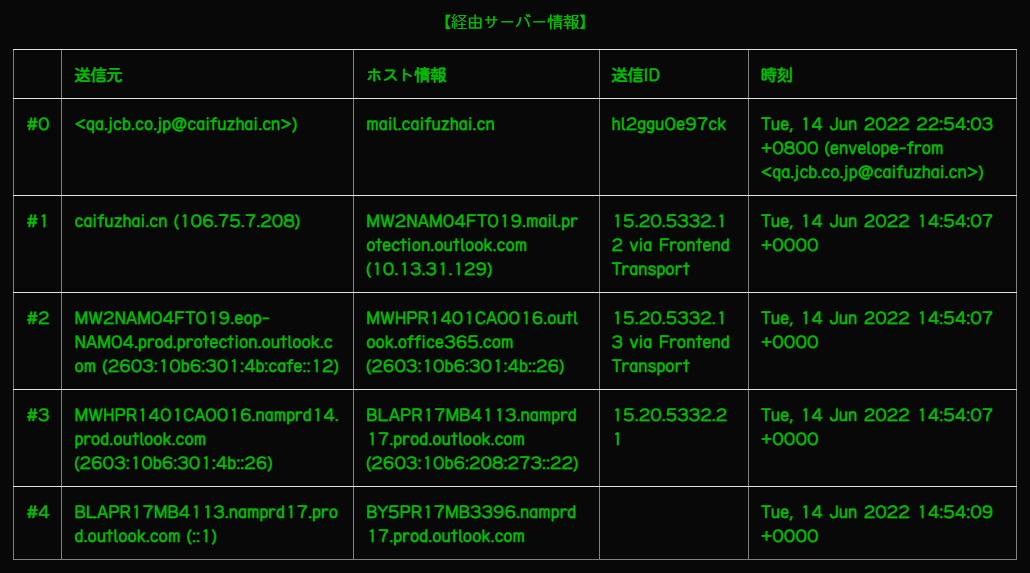 実際、私が以前開発した「メールヘッダー分析ツール」でメールを調査すると、送信元が中国のサーバーであることが分かります。